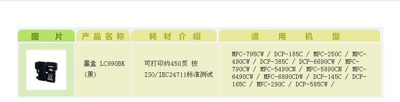 颜色分类:LC990M红色,LC990C蓝色,LC990Y黄色,LC990BK黑色
