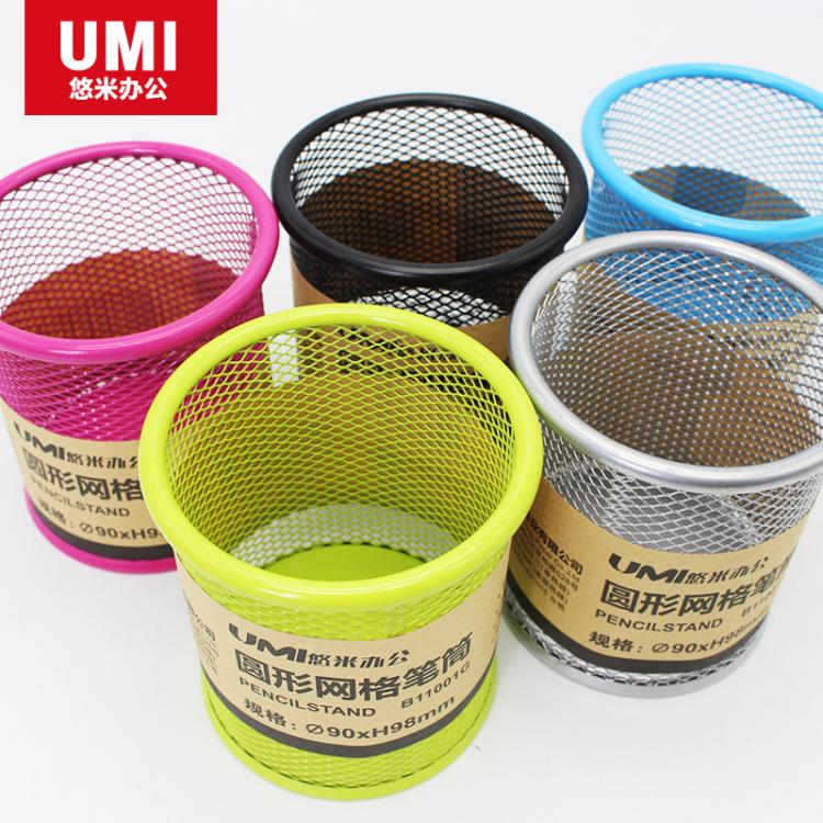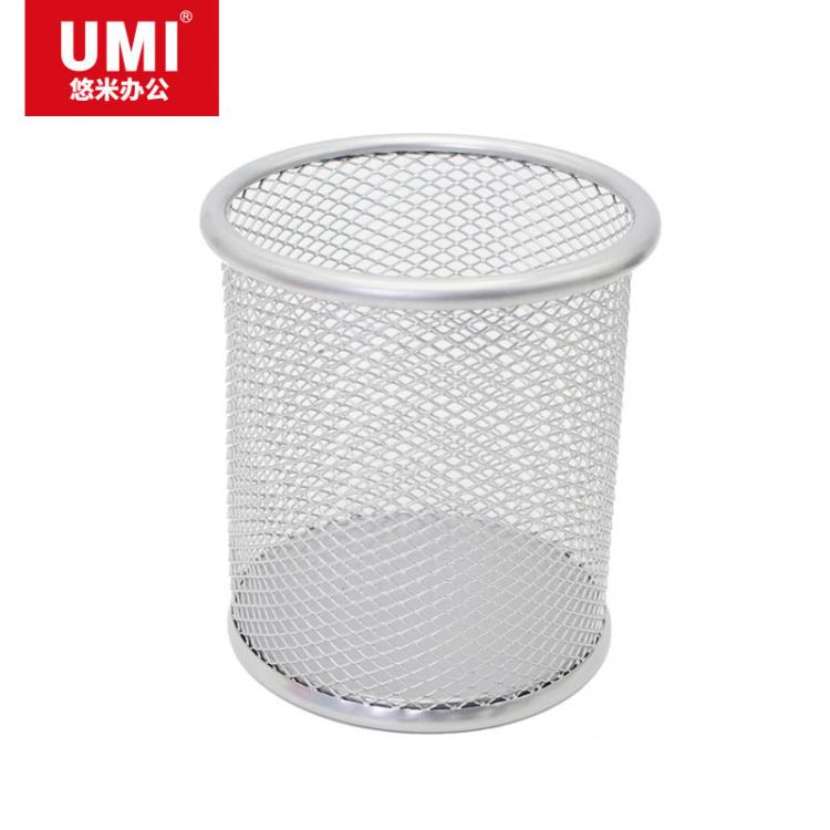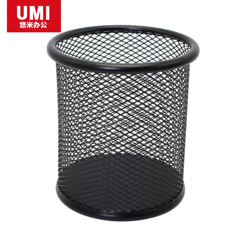 悠米圆形金属网格笔筒 B11001D 黑/银色