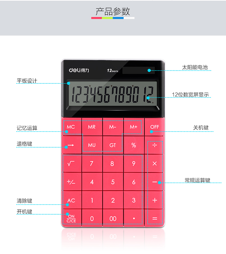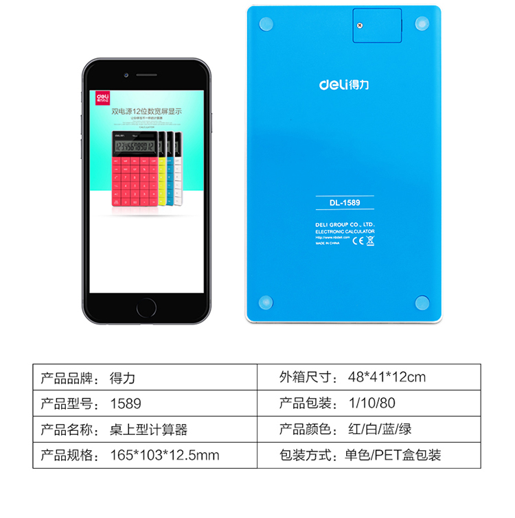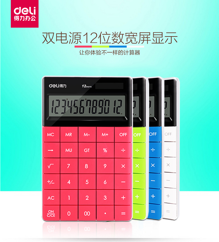 得力 1589 时尚彩色无缝按键平板式计算器