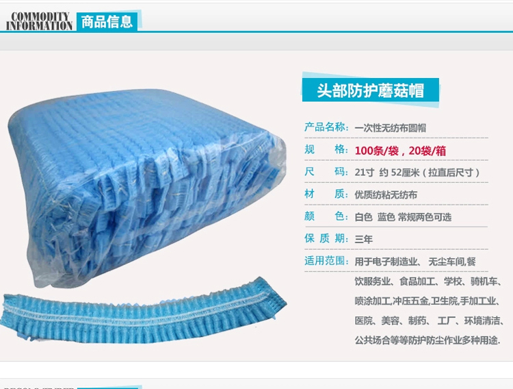 一次性无纺布条形帽 头套 蘑菇帽 白色 100只装