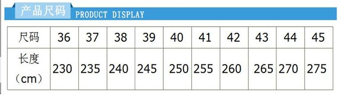 比运动鞋大一尺码 例如运动鞋42码建议购买41码的鞋子!