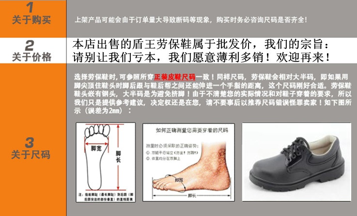 | 产品名称 : | 盾王2301劳保鞋 防砸钢包头 透气劳保鞋 耐油 耐酸碱 国标 |