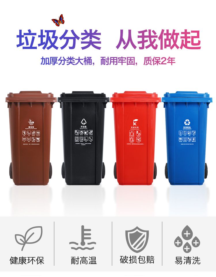 上海指定款/240L户外垃圾桶 大号环卫 中天分类干湿垃圾桶