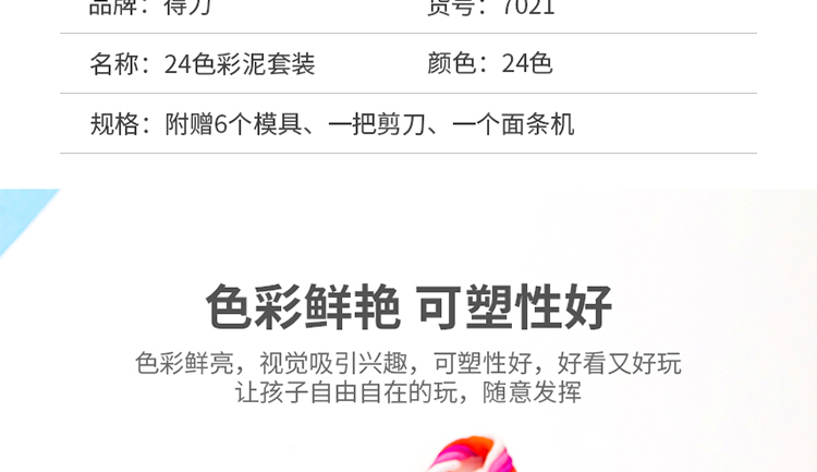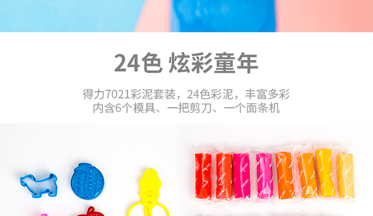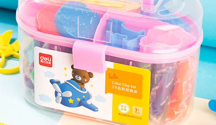 得力7021 盒装创意彩泥/橡皮泥(24色)(颜色随机发)