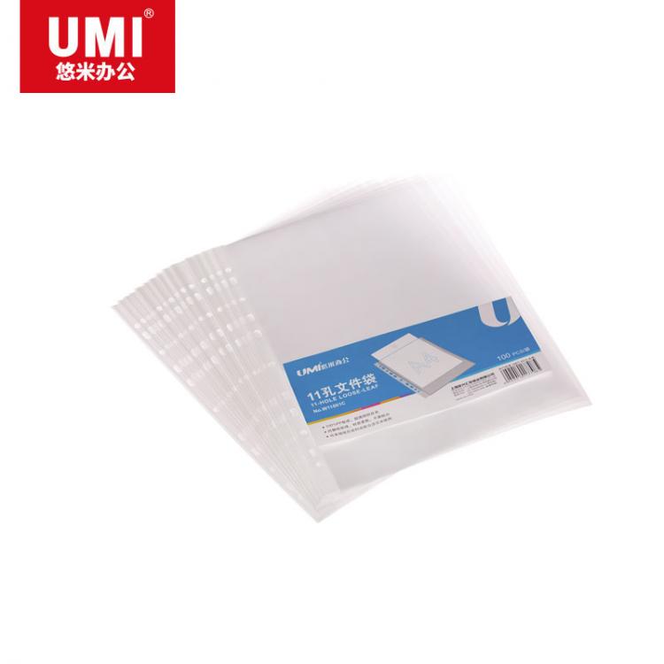 悠米 加厚11孔资料备用袋 W11001C 透明 文件保护套...