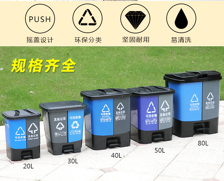 上海专用分类双桶垃圾桶 带盖商用脚踏 20L