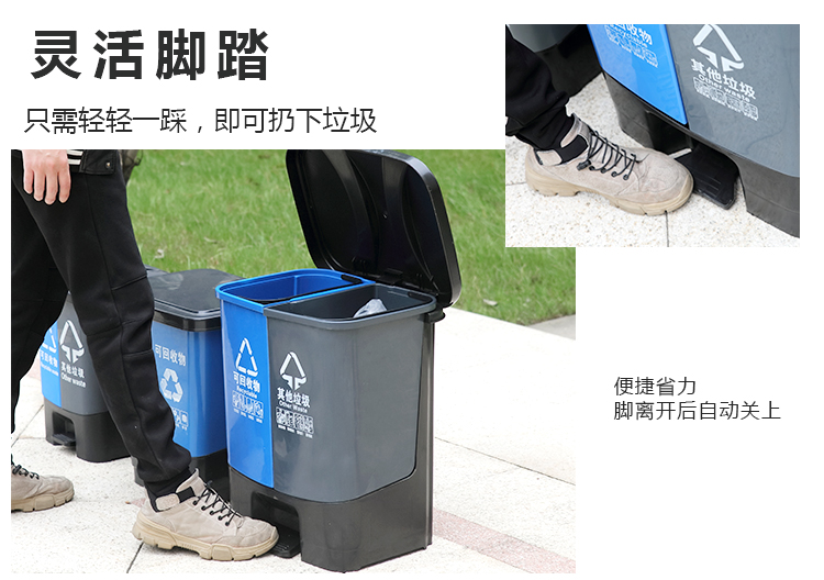 上海专用分类双桶垃圾桶 带盖商用脚踏 50L