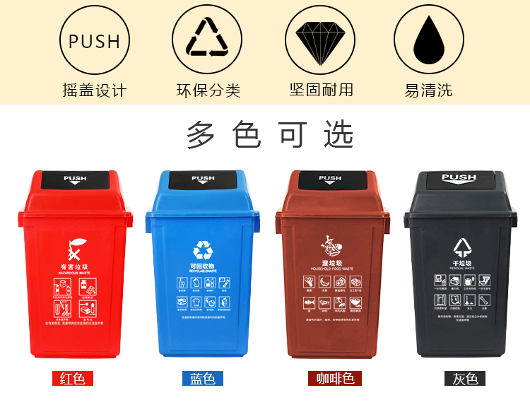 上海指定干湿分类摇盖户外垃圾桶 40L