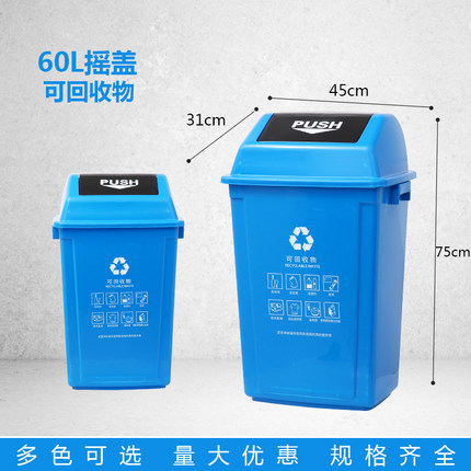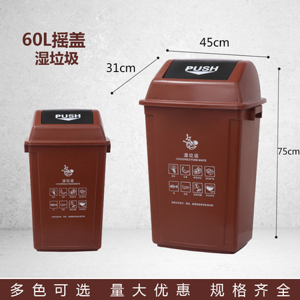 上海指定干湿分类摇盖户外垃圾桶 60L