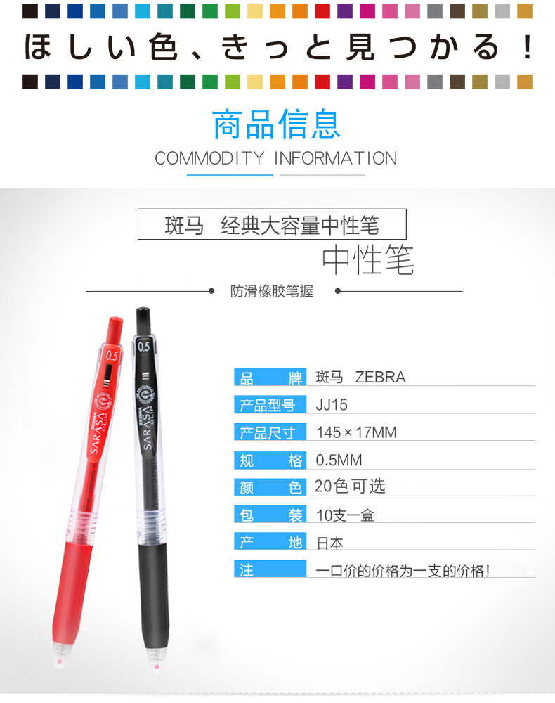 斑马顺利中性笔 JJ15 0.5mm (黑色) 10支/盒