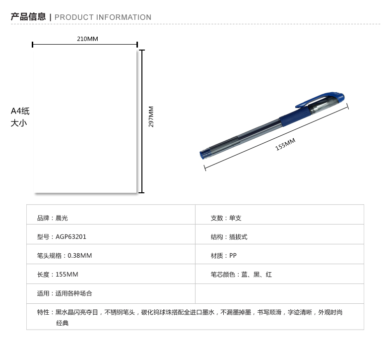 晨光AGP63201A(黑)中性笔水晶 0.38