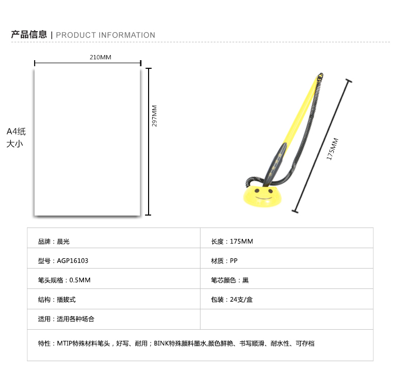 晨光AGP16103A(黑)中性笔微笑服务台笔 0.5