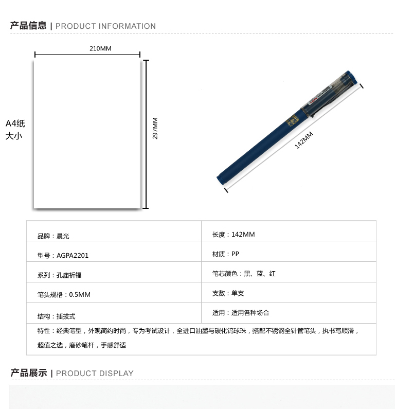 晨光陶瓷球珠中性笔孔庙祈福AGPA2201黑0.5
