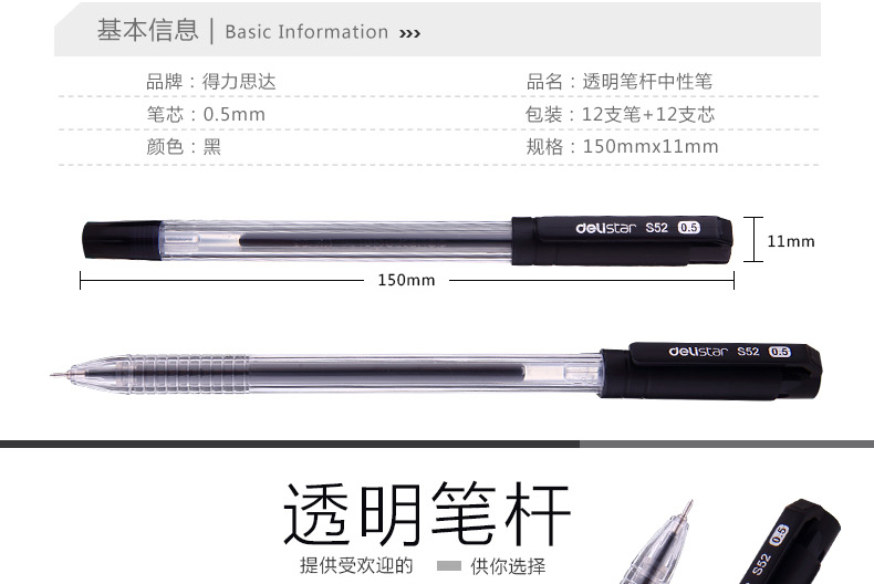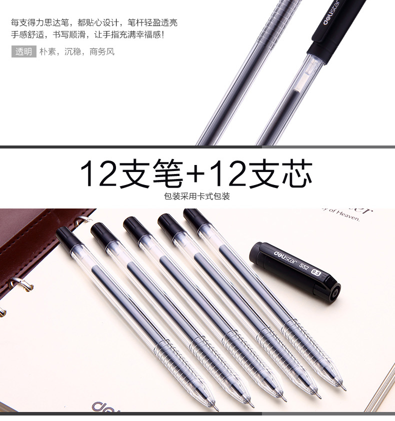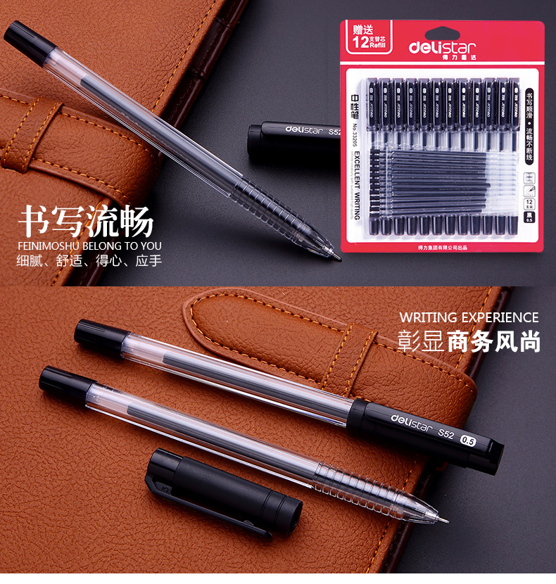 得力33205(黑)思达0.5拔帽式中性笔(卡式)