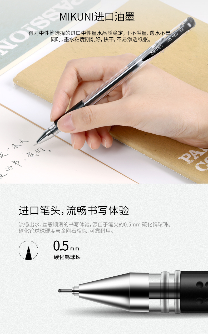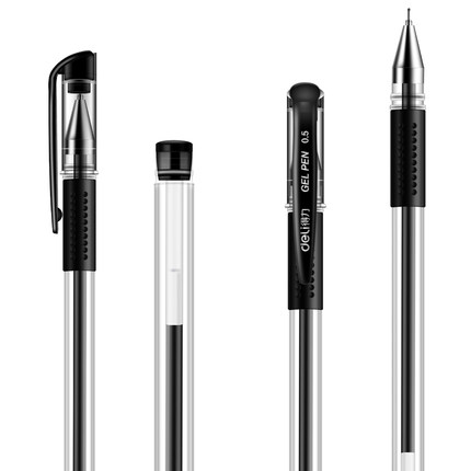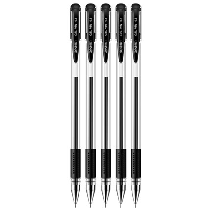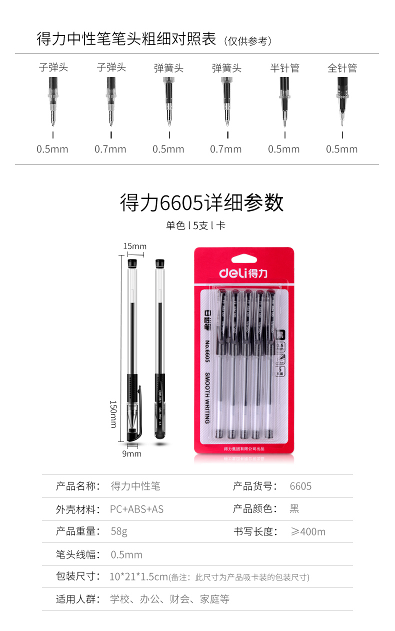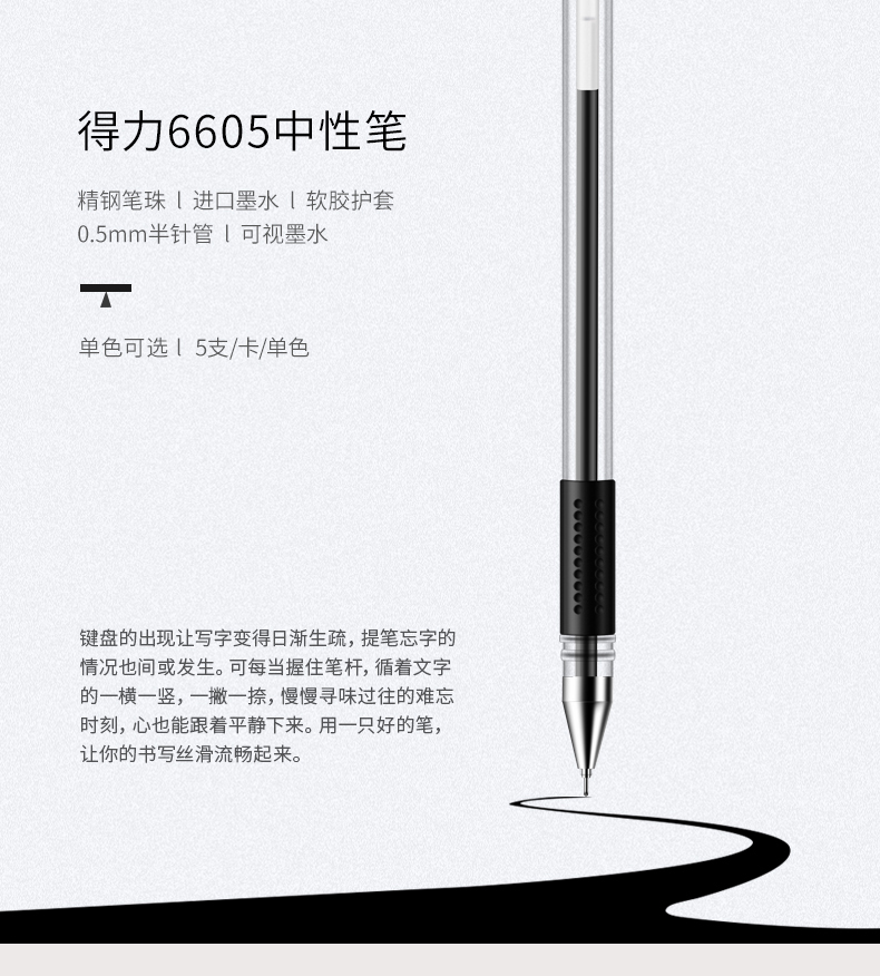 得力6605(黑色)中性笔0.5mm半针管(5支/卡)