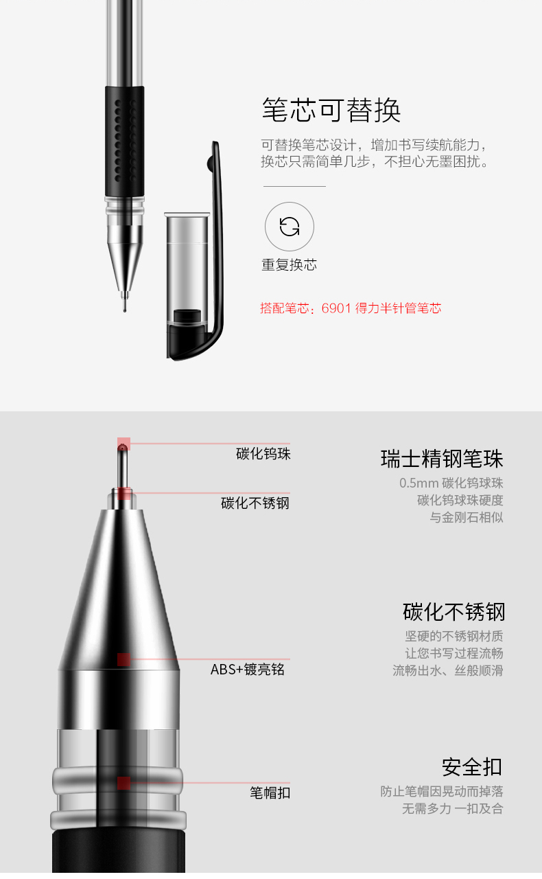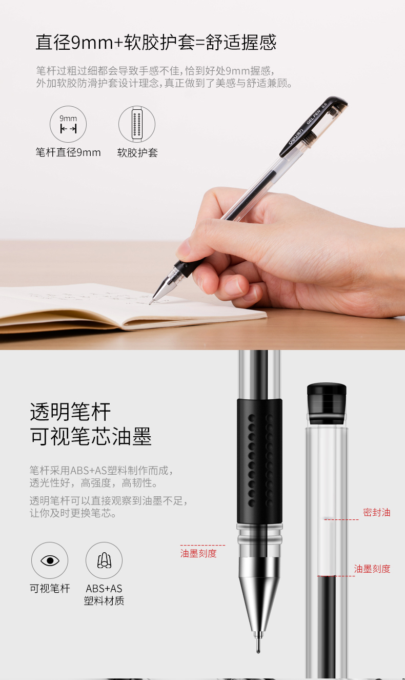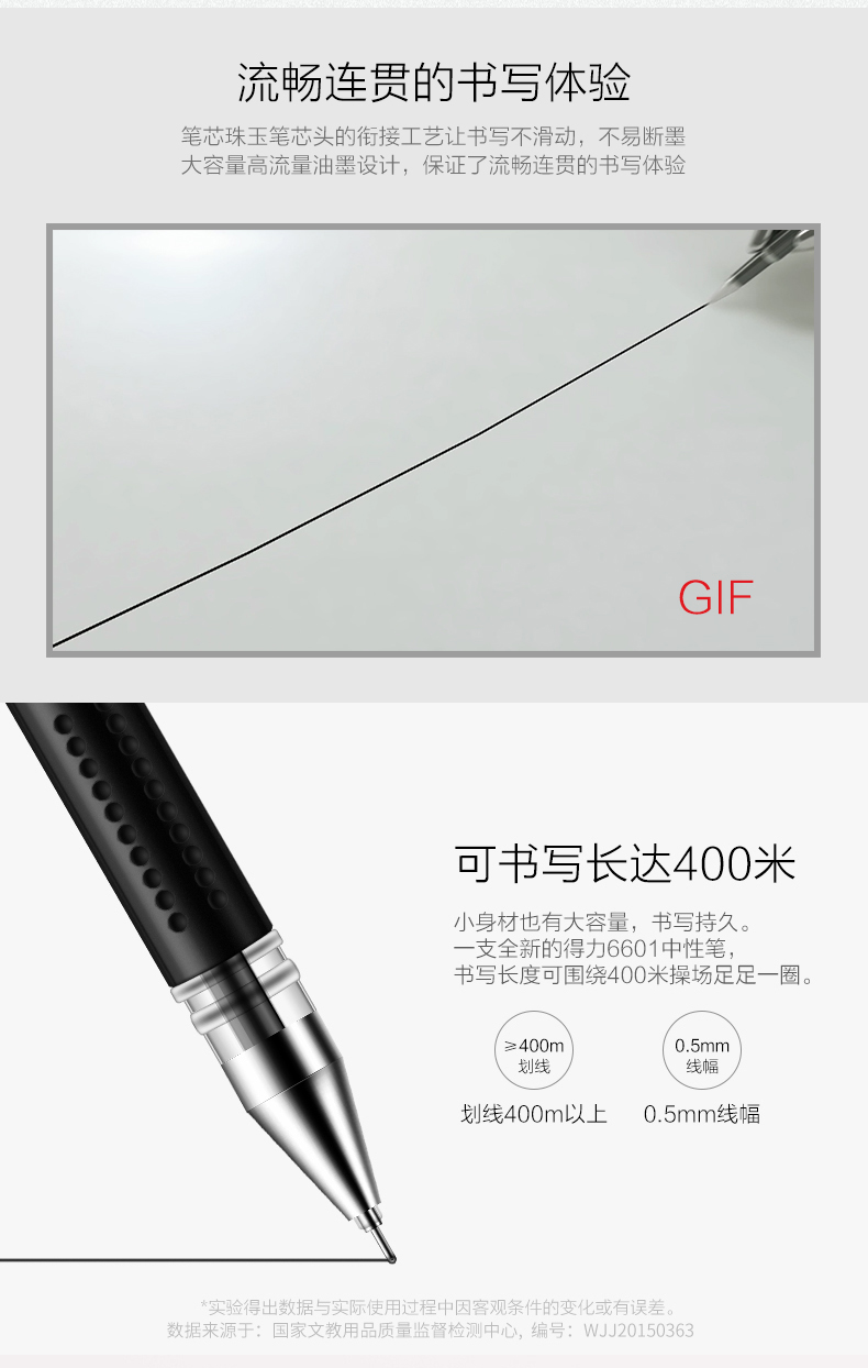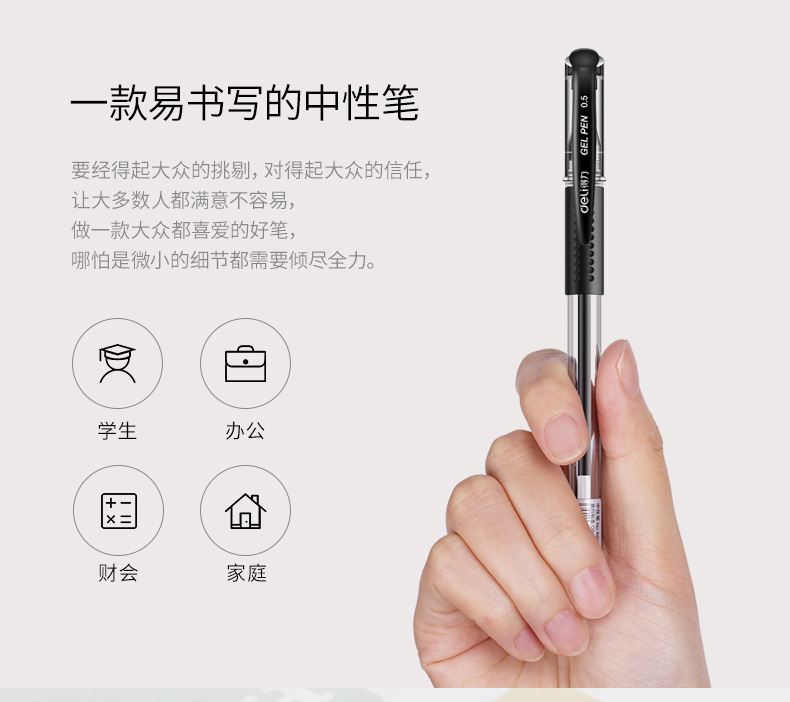 得力6605(黑色)中性笔0.5mm半针管(5支/卡)