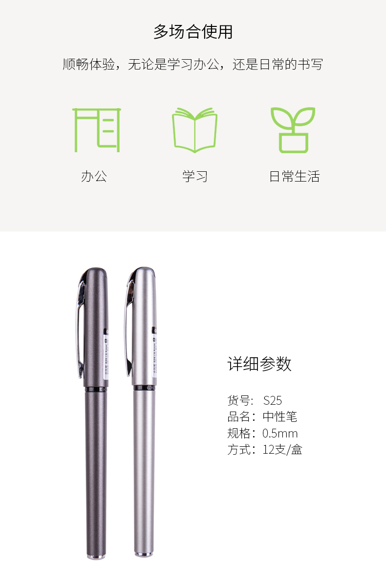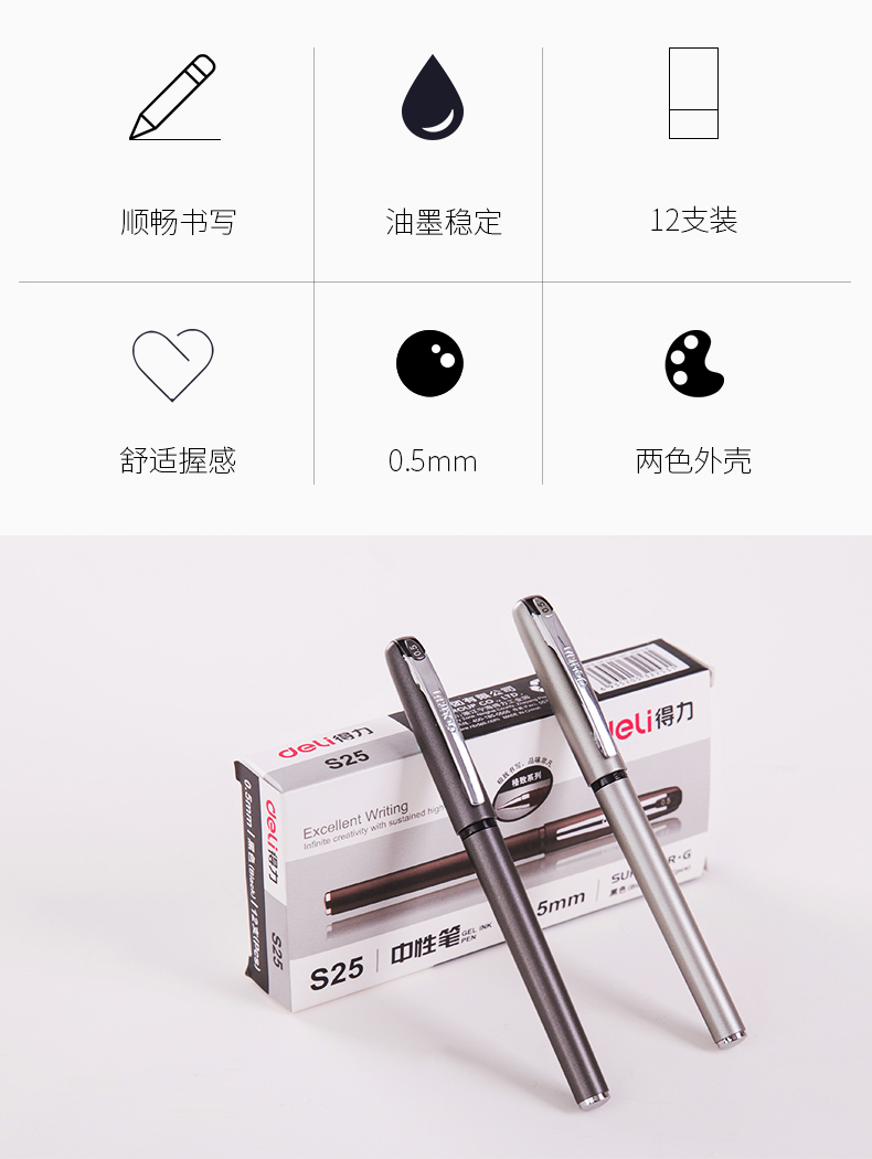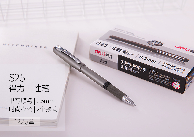 得力S25中性笔0.5mm子弹头(黑)(支)