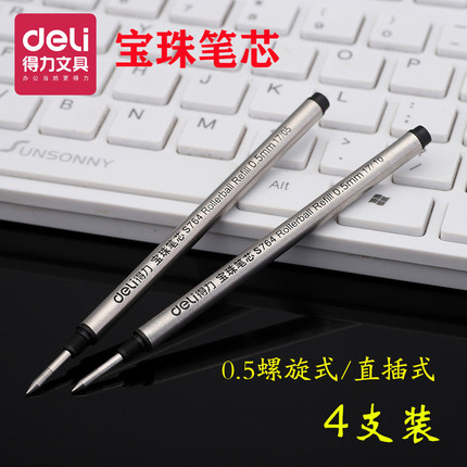 得力S764(黑色)宝珠笔芯0.5mm子弹头(1支/卡)
