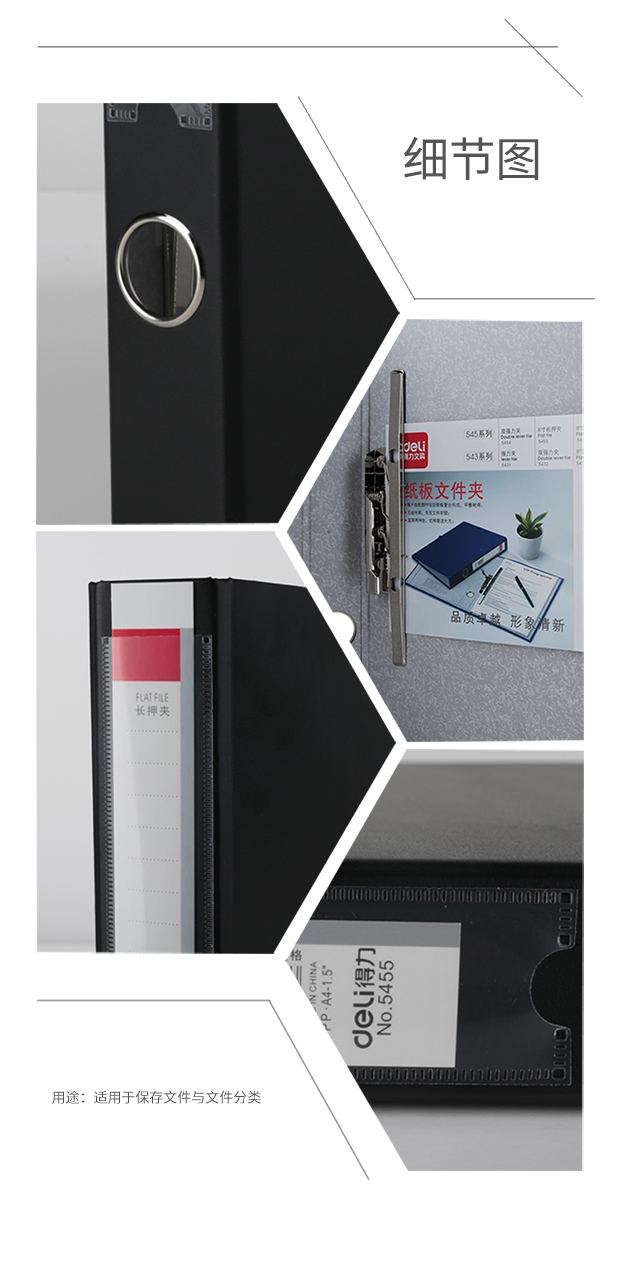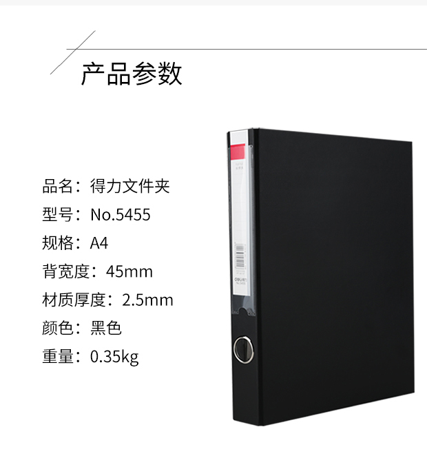 得力5455 8寸长押夹文件夹239*315*40mm