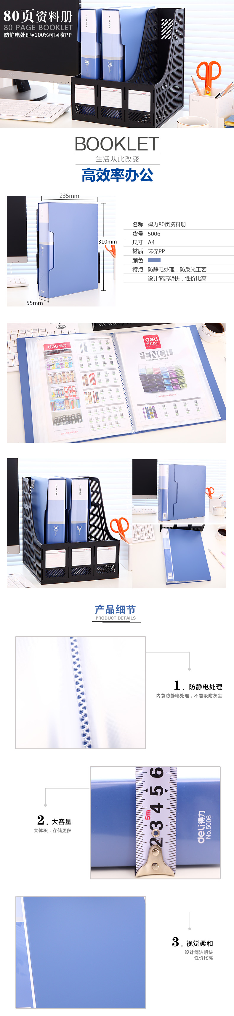 得力5006(蓝)80页资料册经济型