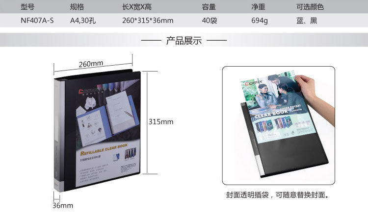 齐心NF40AK资料册40袋A4