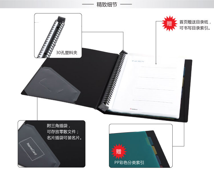 齐心NF407A-S(蓝色)活页资料册40袋30孔塑胶夹A4