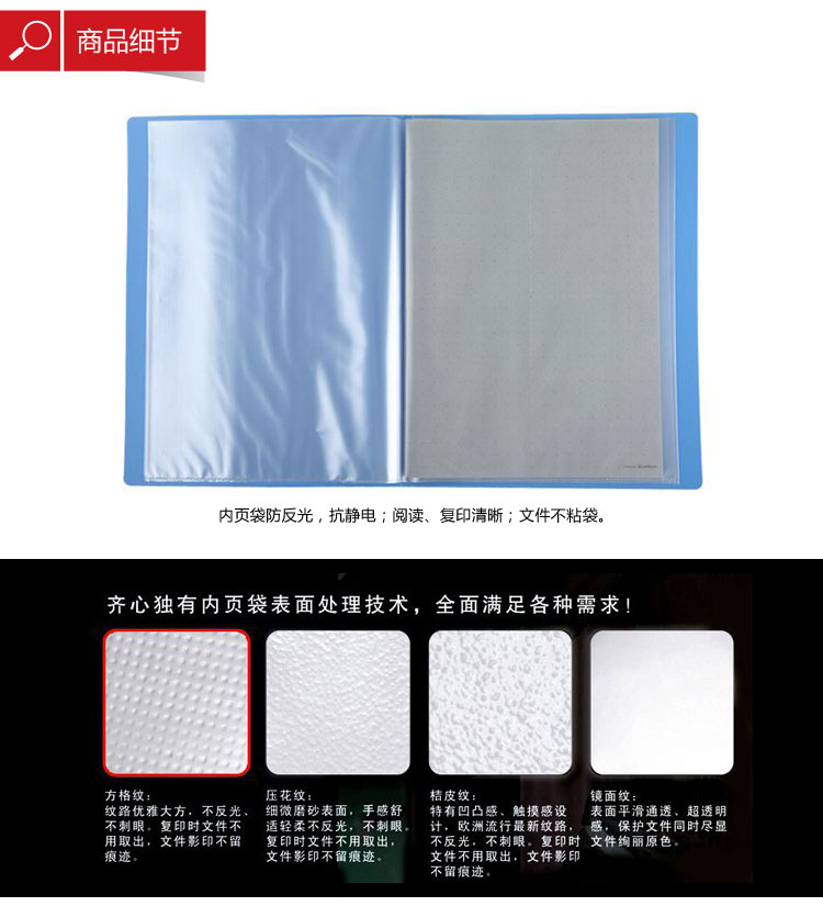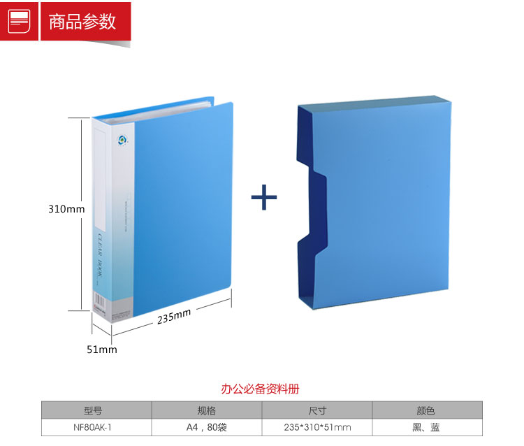 齐心NF80AK-1-X办公必备大容量资料册A4 80袋配外...