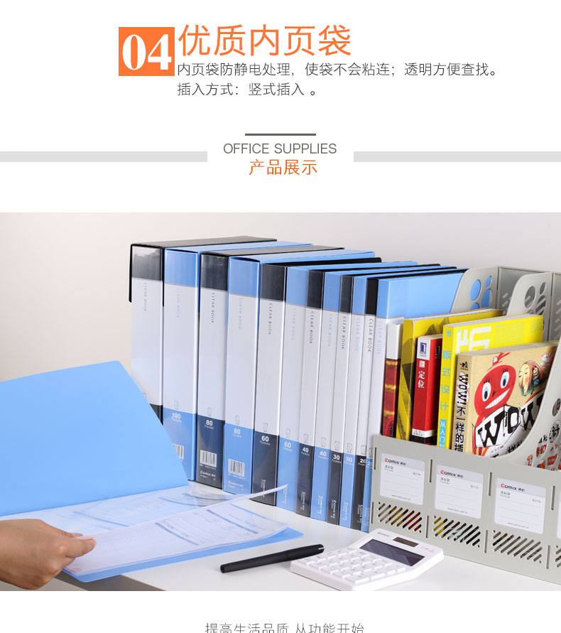齐心PF20AK(蓝色)超省钱资料册 A4 20袋