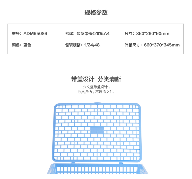 晨光ADM95086砖形带盖公文篮A4