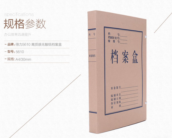 得力5610无酸牛皮纸档案盒(棕黄)(10个/包)
