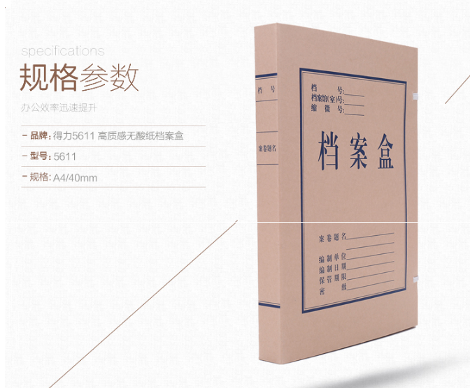 得力5611无酸牛皮纸档案盒(棕黄)(10个/包)