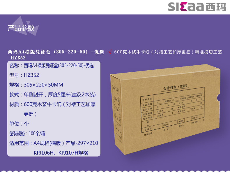 西玛HZ352优选横版凭证盒-A4