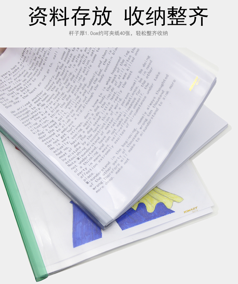 金得利Q310(透明白)A4透明杆抽杆夹