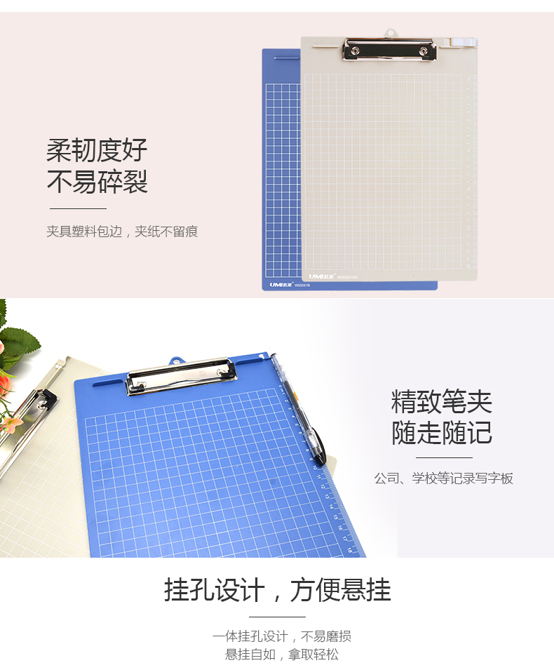 悠米 实色塑胶板夹,A4,平板夹 W05001B