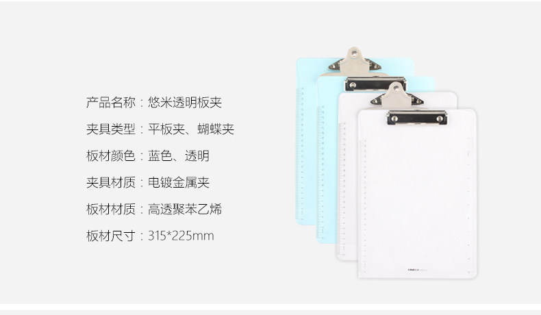悠米 透明塑胶板夹,A4,平板夹 W05103B