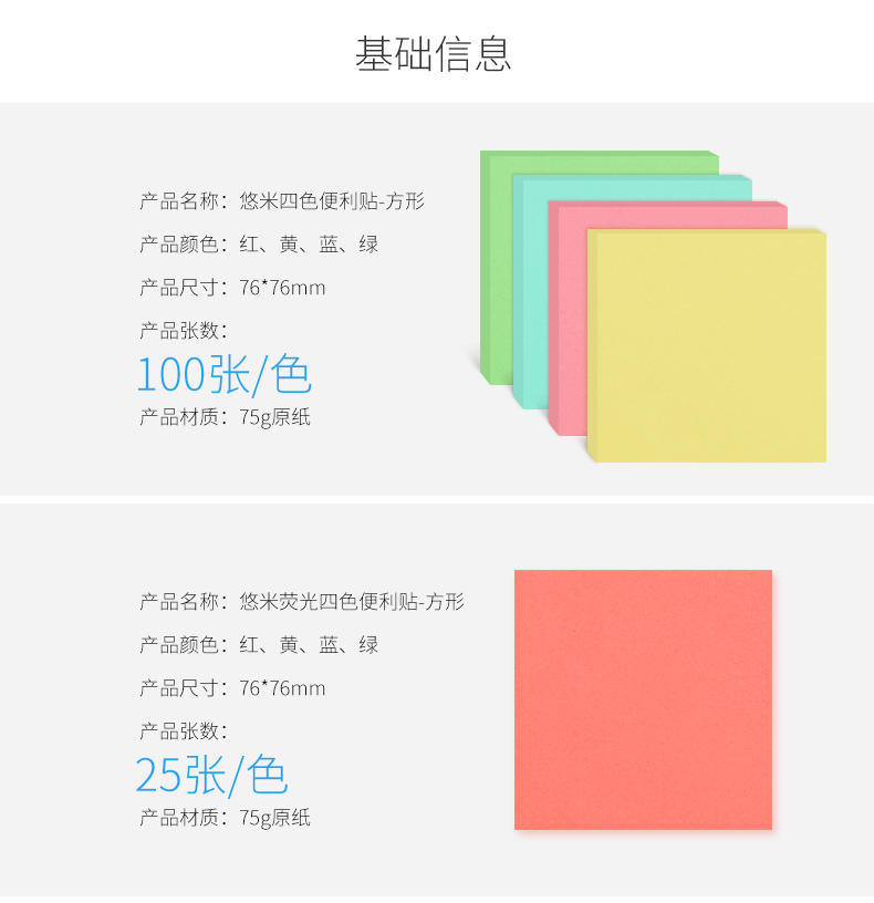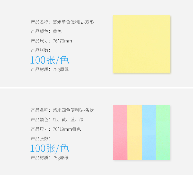 悠米P02009X条状易事贴 76mm*19mm 四色装