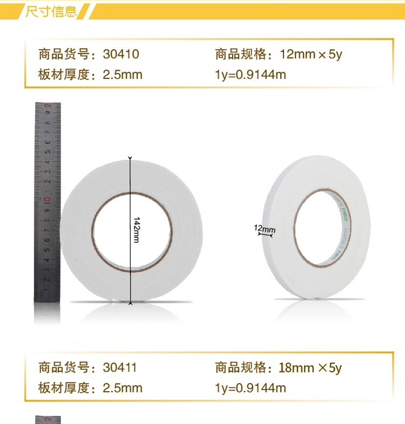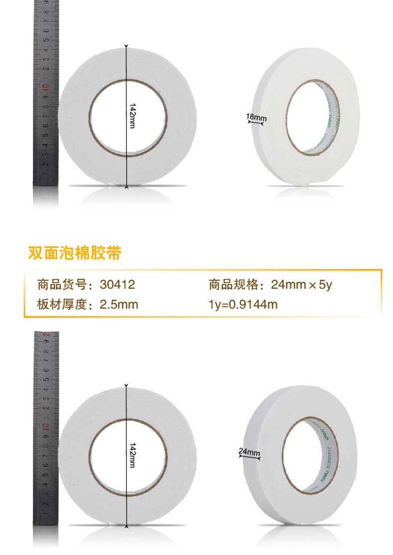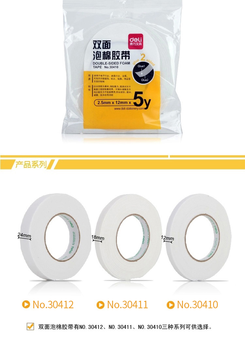 得力30410(白色)EVA泡棉双面胶带12mm*5y*2....