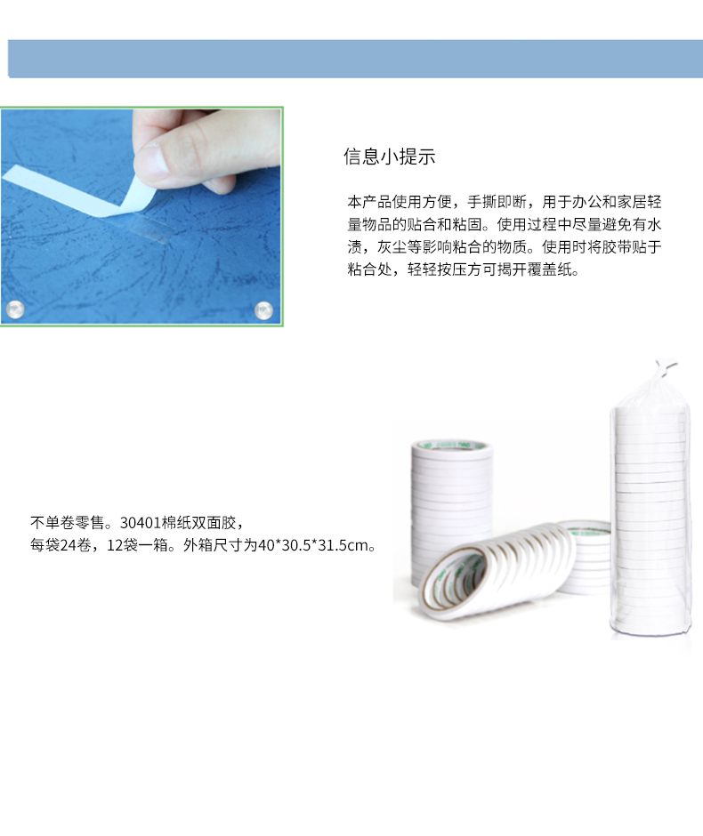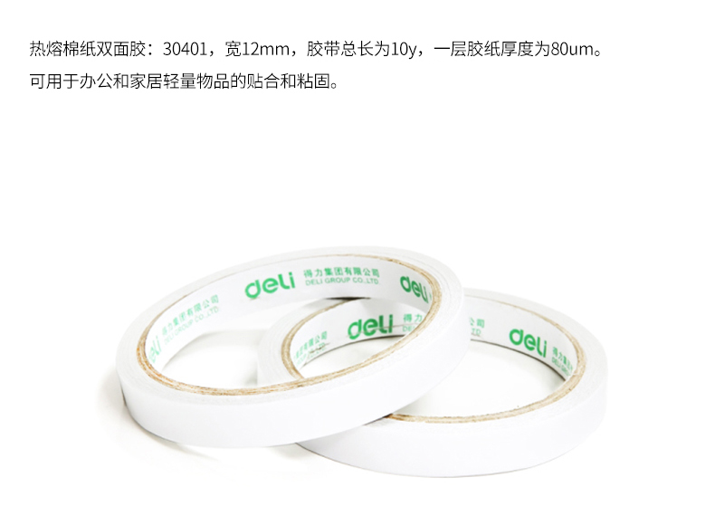得力30401(白)棉纸双面胶带12mm*10y