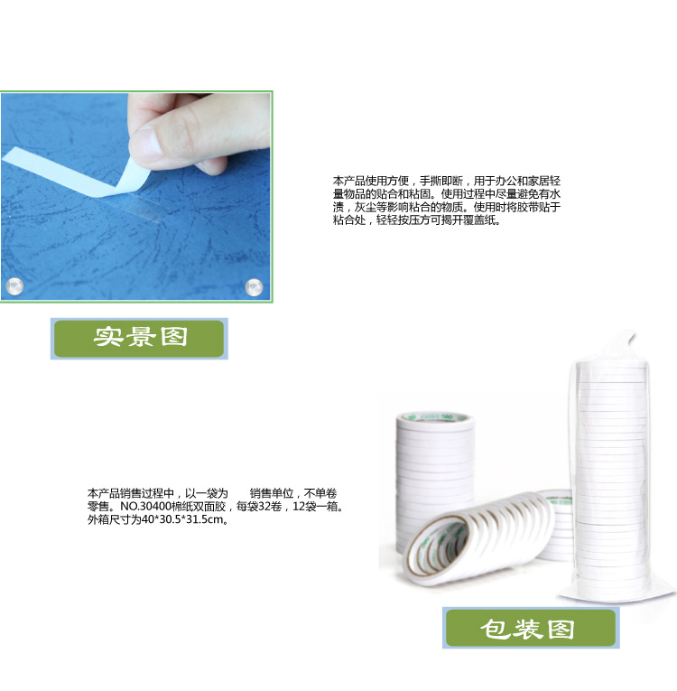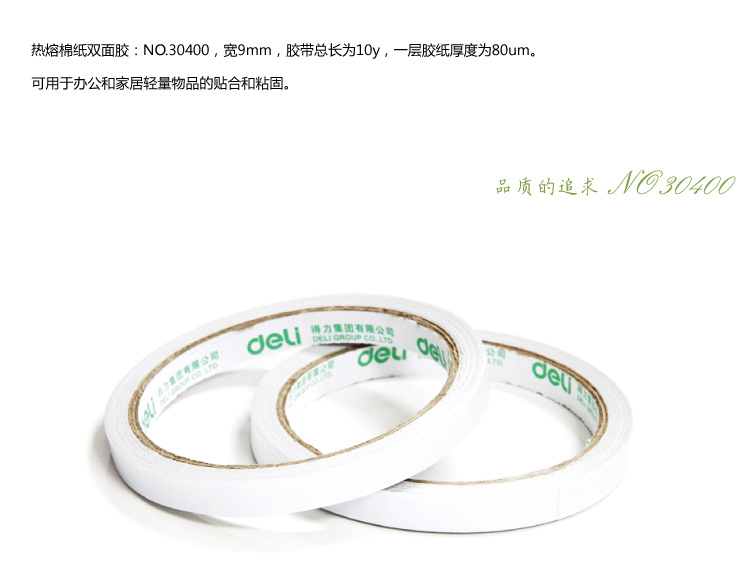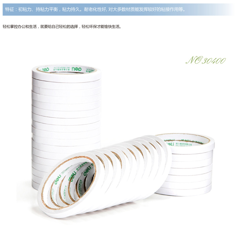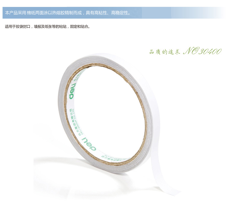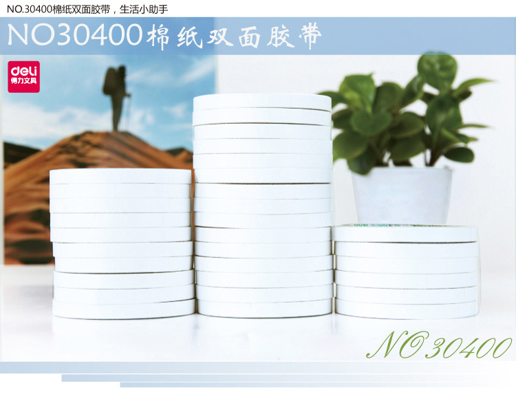 得力30400(白)棉纸双面胶带9mm*10y 32卷/袋