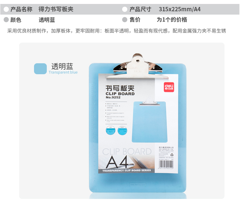 得力 9252(浅蓝)书写板夹