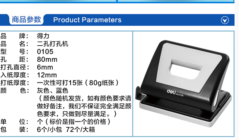 得力0105(混)两孔打孔机带标尺可打15页/80克