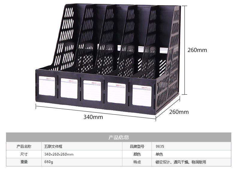 得力(deli) 9835(黑)五联文件框