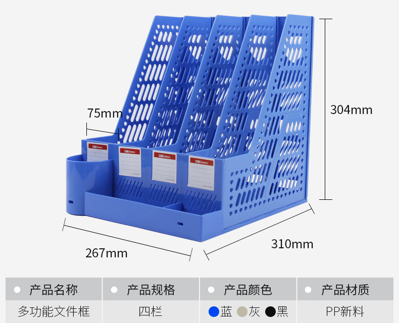 悠米(UMI)B13024D 多功能、带笔筒注塑文件框,四栏...