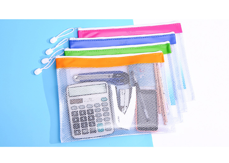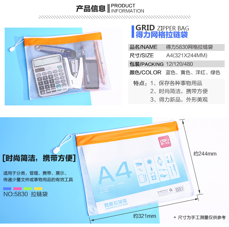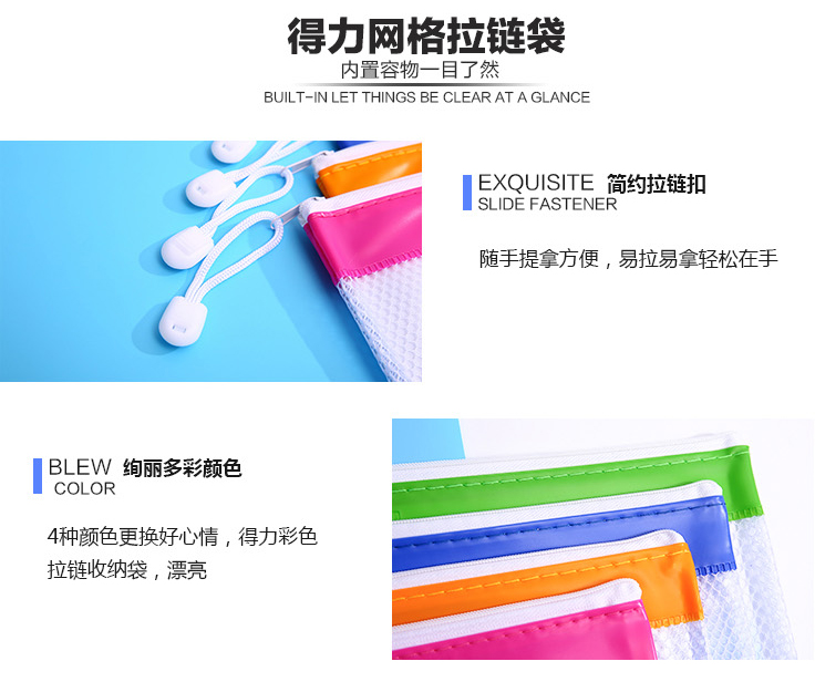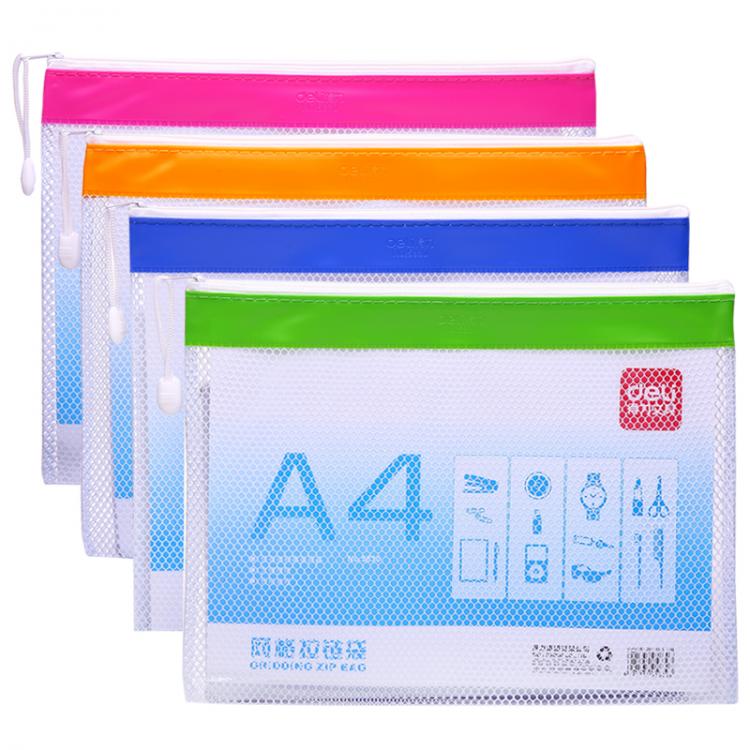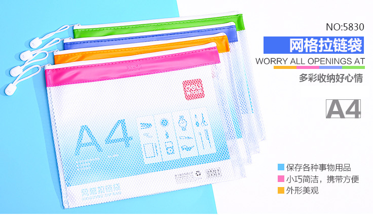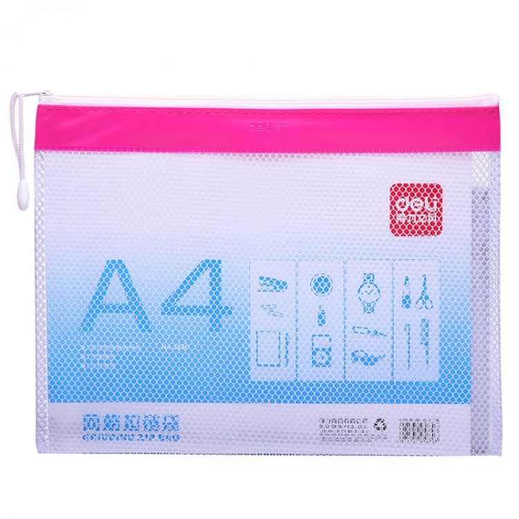 得力 5830(混)PVC网格拉链袋A4