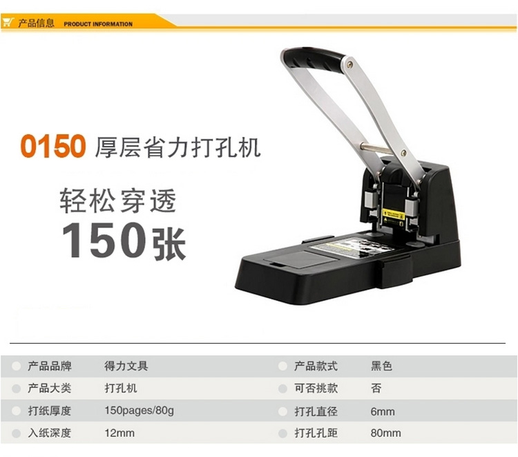 得力0150(黑)两孔打孔机重型可打150页/80克