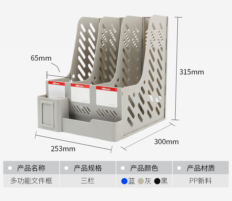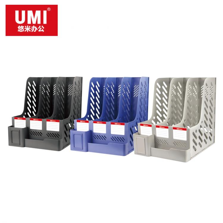 悠米(UMI)B13023B 多功能带笔筒注塑文件框三栏 蓝...
