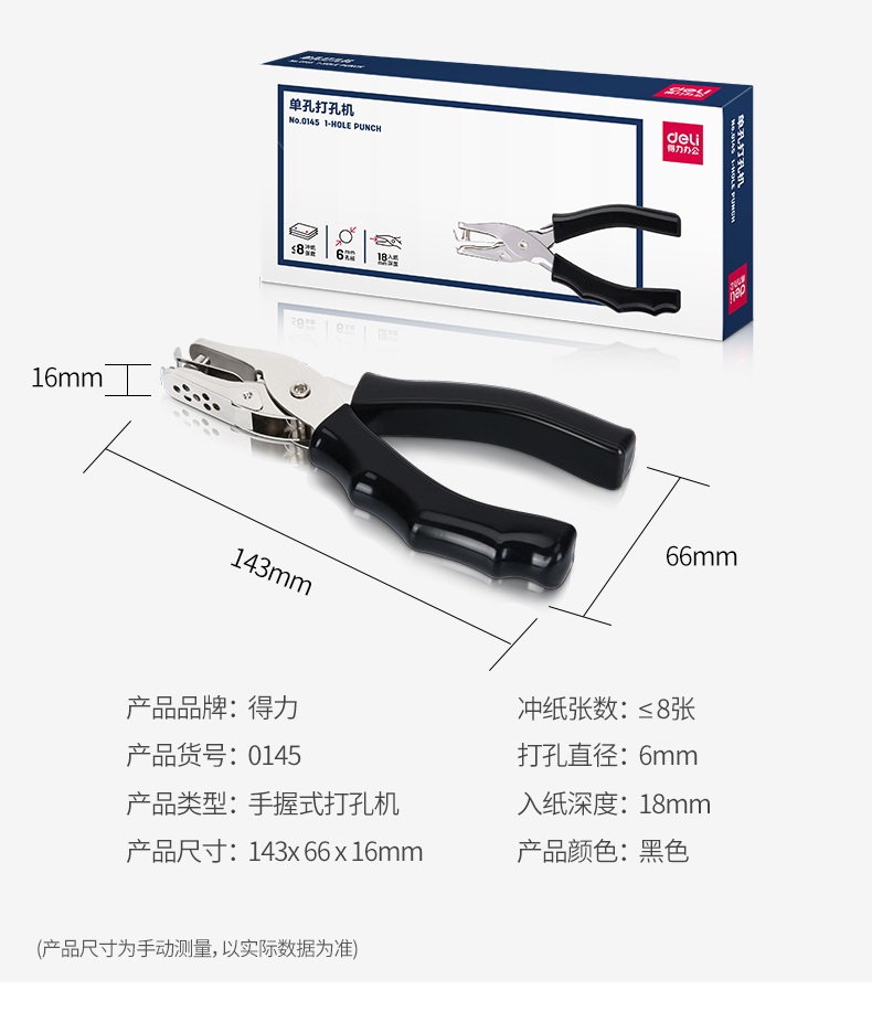得力0145(黑色)手握式打孔机