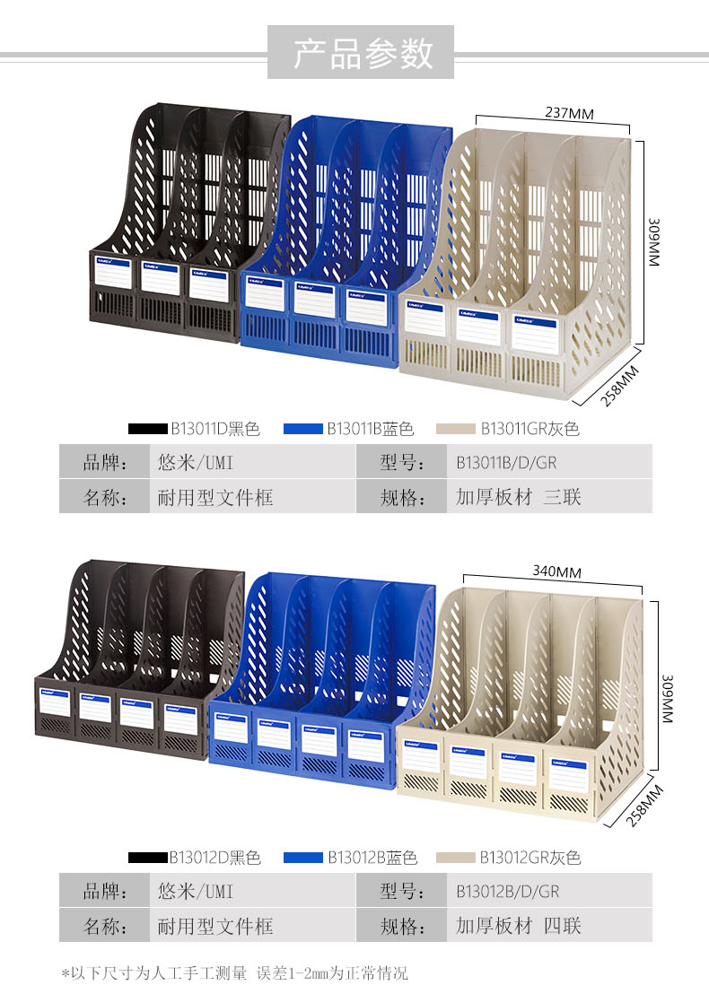悠米(UMI)耐用型四联文件框 B13012GR 灰