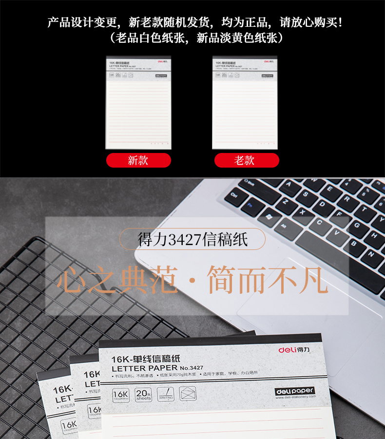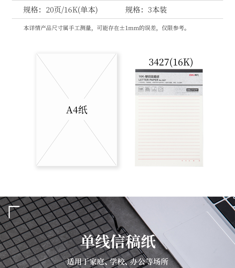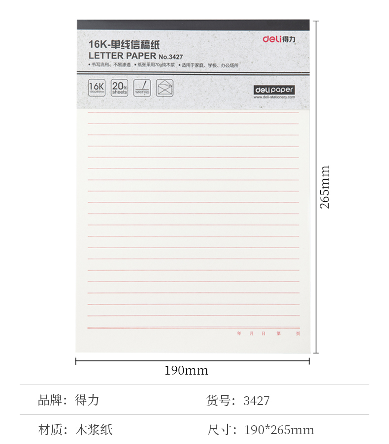 得力 3427单线信稿纸-70g-266*190mm(本)