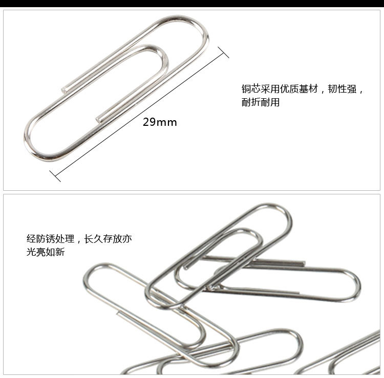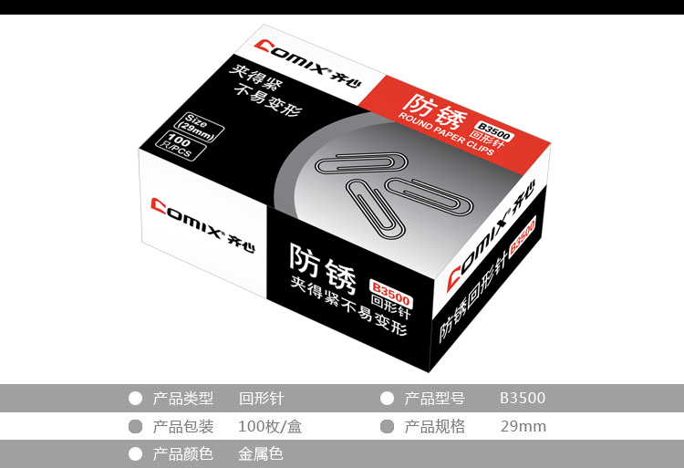 齐心 B3500防锈回形针纸盒装B3500镍29MM